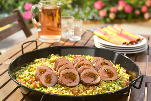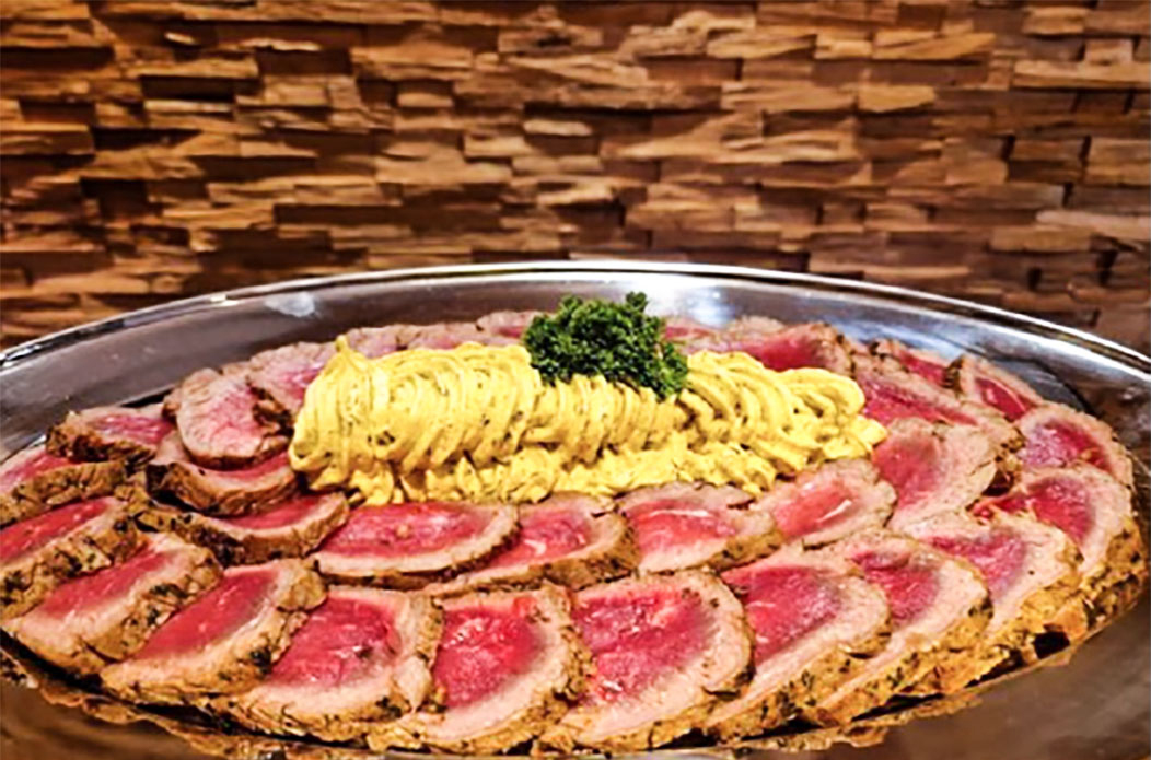Das geschichtete Entrecôte «Café de Paris» kann fix fertig bei uns bestellt werden und Sie müssen lediglich die Platte auf ein Rechaud stellen und langsam erwärmen lassen. Durch die Metallplatte wird die Hitze gleichmässig verteilt und Sie, wie Ihre Gäste, können die Scheiben je nach Geschmack länger oder kürzer braten. Dazu passen Pommes Frites und ein klassischer grüner Salat.